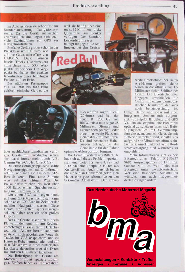 Leider heißt es links im Motorrad Abenteuer auf Seite 79 fälschlicherweise, unsere Halterungen seien aus beschichtetem Stahlblech. Das ist FALSCH !