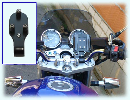 Schmale Schelle aus dickem Material (wenn nur wenig Platz am Lenker vorhanden ist) Durchmesser 22 mm - mit 3 Dämpfern 10 x 15 mm Auf Wunsch auch Dämpfern in 2 Ebenen lieferbar. (Ähnlich Schelle-7 mit der Adapterplatte für Enduro) |
