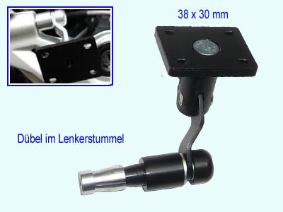 Zur Zeit gibt es diese Dübel für 12-14mm und 15-19mm Durchmesser. Auf der schwenkbaren Platte kann das Navi montiert werden. Die Montage erfolgt seitlich im Lenkerstummel. Im Shop - als Artikel: BS-STUM-VAR
